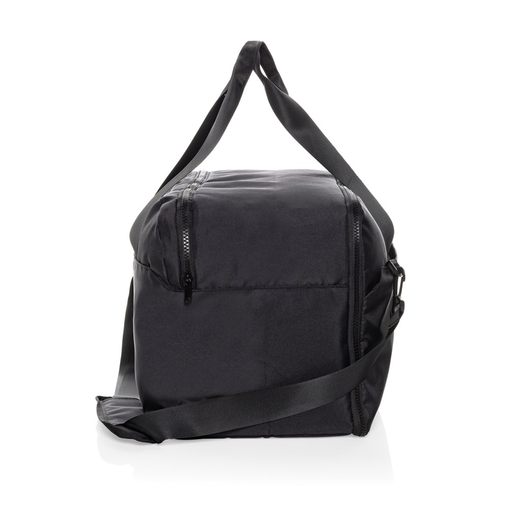 Sac weekend Swiss Peak avec compartiment pour ordinateur portable de 15"6 pouces pour tous vos courts voyages d'affaires. Fabriqué en rPET 300D/150D Aware™. Le compartiment principal est doté de poches supplémentaires et d'une poche à fermeture éclair à l'intérieur. Fermetures à zip rigides.