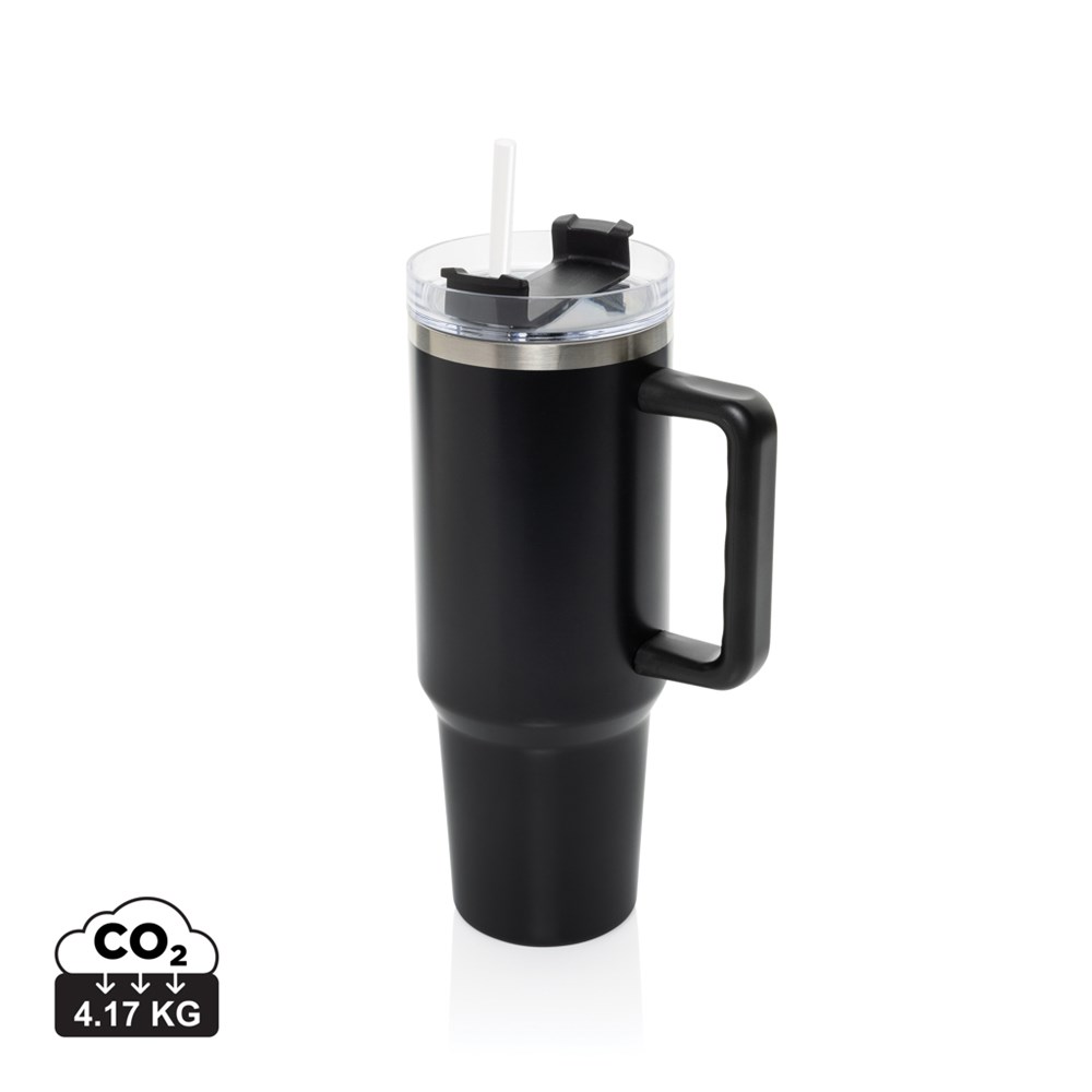 Voici Peakflow, le Mug ultime de 1200 ml conçu pour ceux qui ont besoin d'un petit plus. Grâce à sa poignée confortable et à sa base mince, il est facile à transporter et se loge dans la plupart des porte-gobelets, ce qui vous permet de vous hydrater lors de vos déplacements. Fabriqué à l'extérieur en acier inoxydable recyclé durable, le gobelet Peakflow à double paroi et à isolation sous vide conserve les boissons à la température idéale. Il est doté d'un couvercle anti-éclaboussures avec une double fonction pour siroter ou utiliser la paille en plastique incluse. Certifié RCS, il contient 29 % de matières recyclées et ne contient pas de BPA. Parfaitement pratique et à faible impact, nous recommandons de le laver à la main.