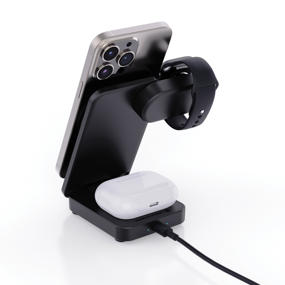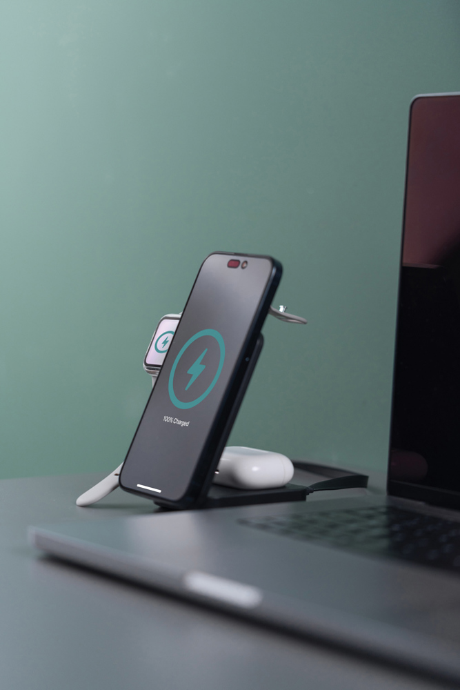 Vous avez besoin de charger tous vos appareils en même temps et à pleine vitesse ? Arcadia a tout prévu avec son chargeur magnétique ultra-rapide de 15W. Ce chargeur sans fil compact peut être utilisé sur votre bureau, mais il est également très facile à plier pour l'emporter en voyage. L'arrière est équipé d'un socle de chargement de 5 W qui vous permet de recharger un deuxième téléphone ou des écouteurs. Pour couronner le tout, utilisez le chargeur de montre pour alimenter les dernières générations d'iWatch. Arcadia est livré avec un câble TPE recyclé de 120 cm pour une installation facile partout où vous le souhaitez. Il suffit de le connecter à une source d'alimentation à charge rapide (minimum 9V/2A) pour démarrer. Il est fabriqué en ABS recyclé certifié RCS (Recycled Claim Standard), avec 34 % de contenu recyclé par rapport au poids total de l'article. Les articles Urban Vitamin sont fabriqués sans PVC et emballés dans des emballages à teneur réduite en plastique.