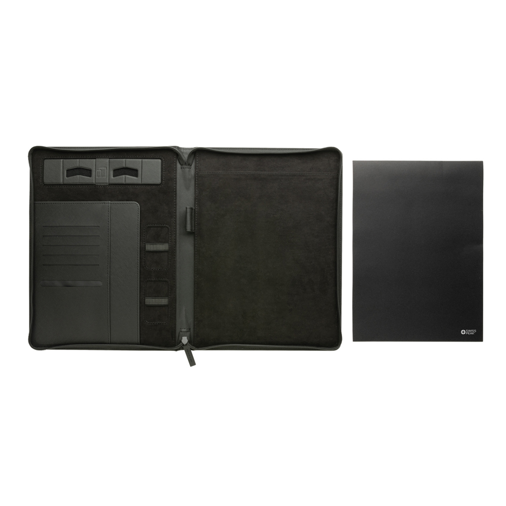 La collection Swiss Peak Héritage reflète élégance et modernité. Livré avec une housse zippée en PU recyclé. Support pour tablette/téléphone, Emplacements pour cartes de visite, rangements pour notes et papiers et un passant stylo. Avec un bloc-notes de 20 feuilles A4 lignées en papier minéral. Fabriqué avec des matériaux recyclés certifiés RCS (Recycled Claim Standard). La certification RCS garantit une chaîne d'approvisionnement entièrement certifiée des matériaux recyclés. PU recyclé certifié RCS. Contenu recyclé total : 9% sur la base du poids total de l'article. Sans PVC.