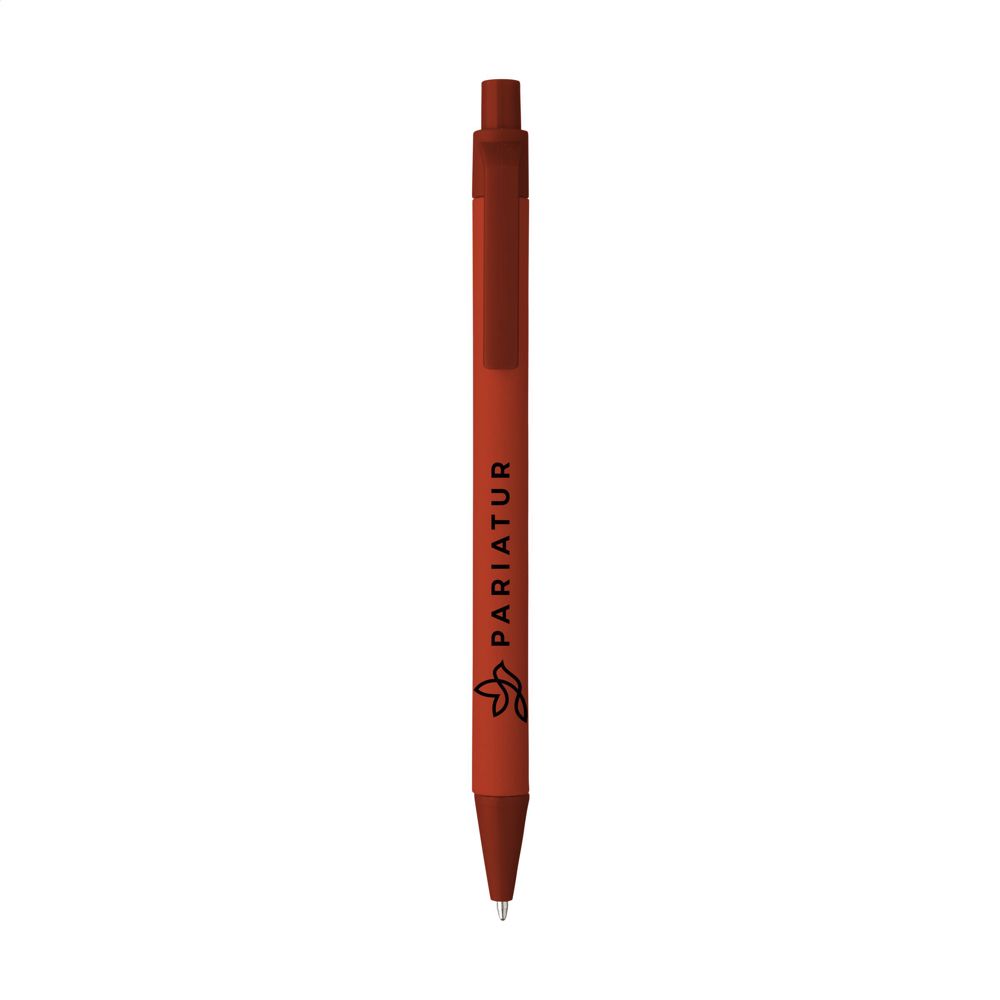 Stylo à bille à encre bleue en papier recyclé. Le clip, le bouton-poussoir et la pointe sont en PLA biodégradable.