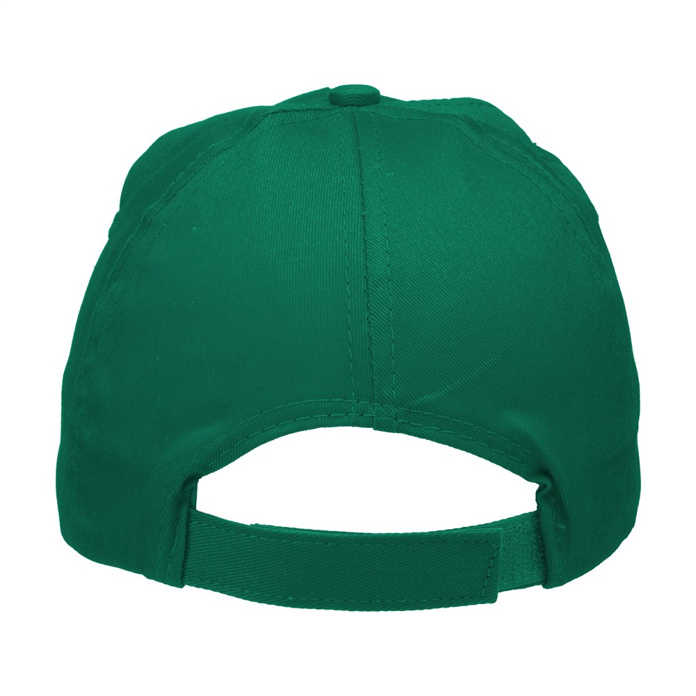 Casquette baseball en 100% coton avec visière préformée et fermeture réglable par bande auto-agrippante.