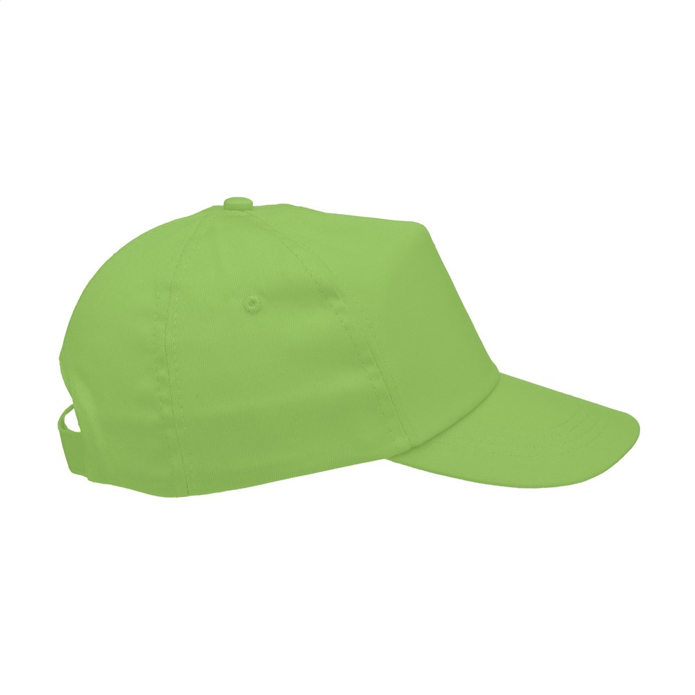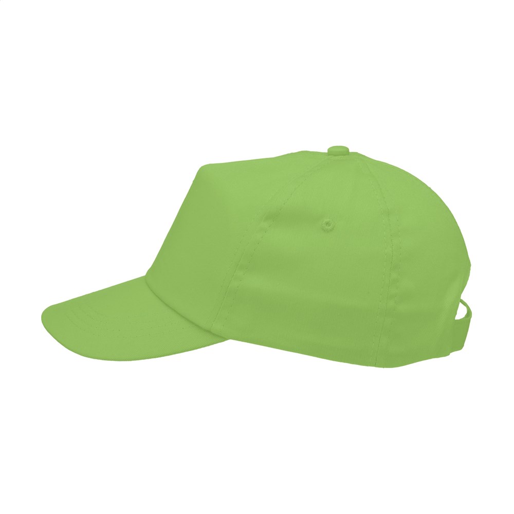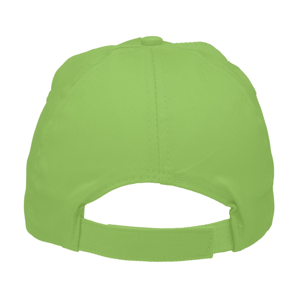 Casquette baseball en 100% coton avec visière préformée et fermeture réglable par bande auto-agrippante.