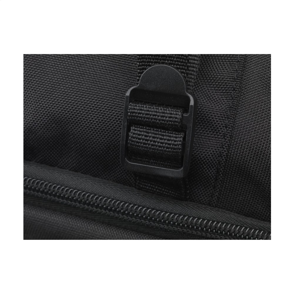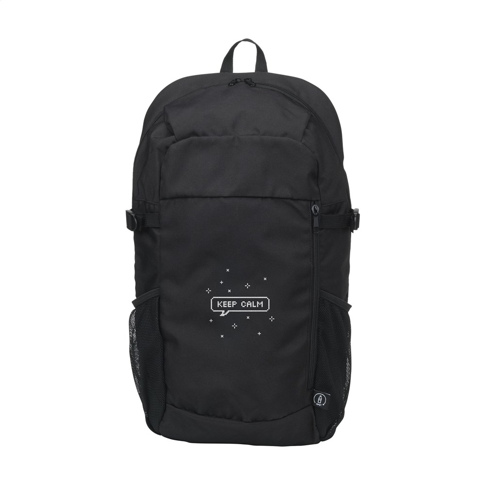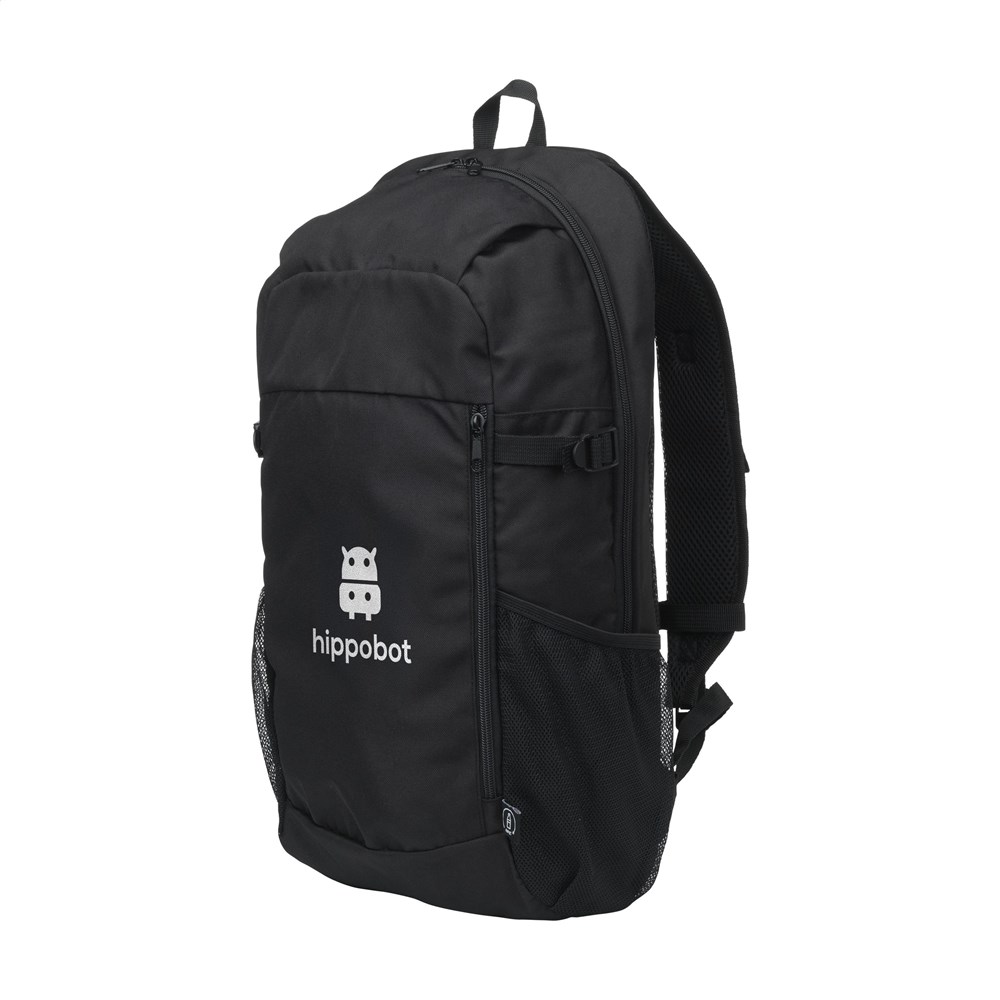Sac à dos en polyester RPET robuste. Un design fin avec un compartiment généreux permettant de...plus