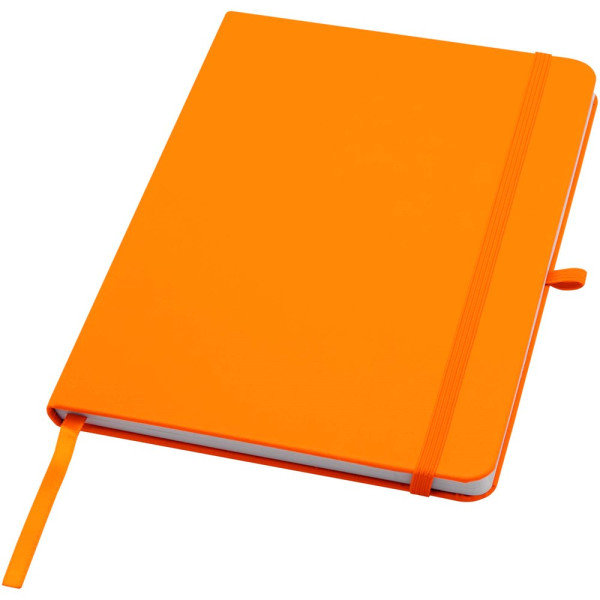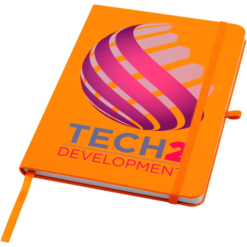 Le carnet A5 en carton recyclé à couverture rigide et coins arrondis Teak est non seulement un indispensable du bureau, mais aussi une excellente occasion de promouvoir votre marque. Le carnet comporte 96 feuilles lignées d'un grammage de 70 g/m2 et une couverture douce au toucher. Il est muni d'une boucle pour stylo, d'une fermeture élastique et d'un ruban marque-page.