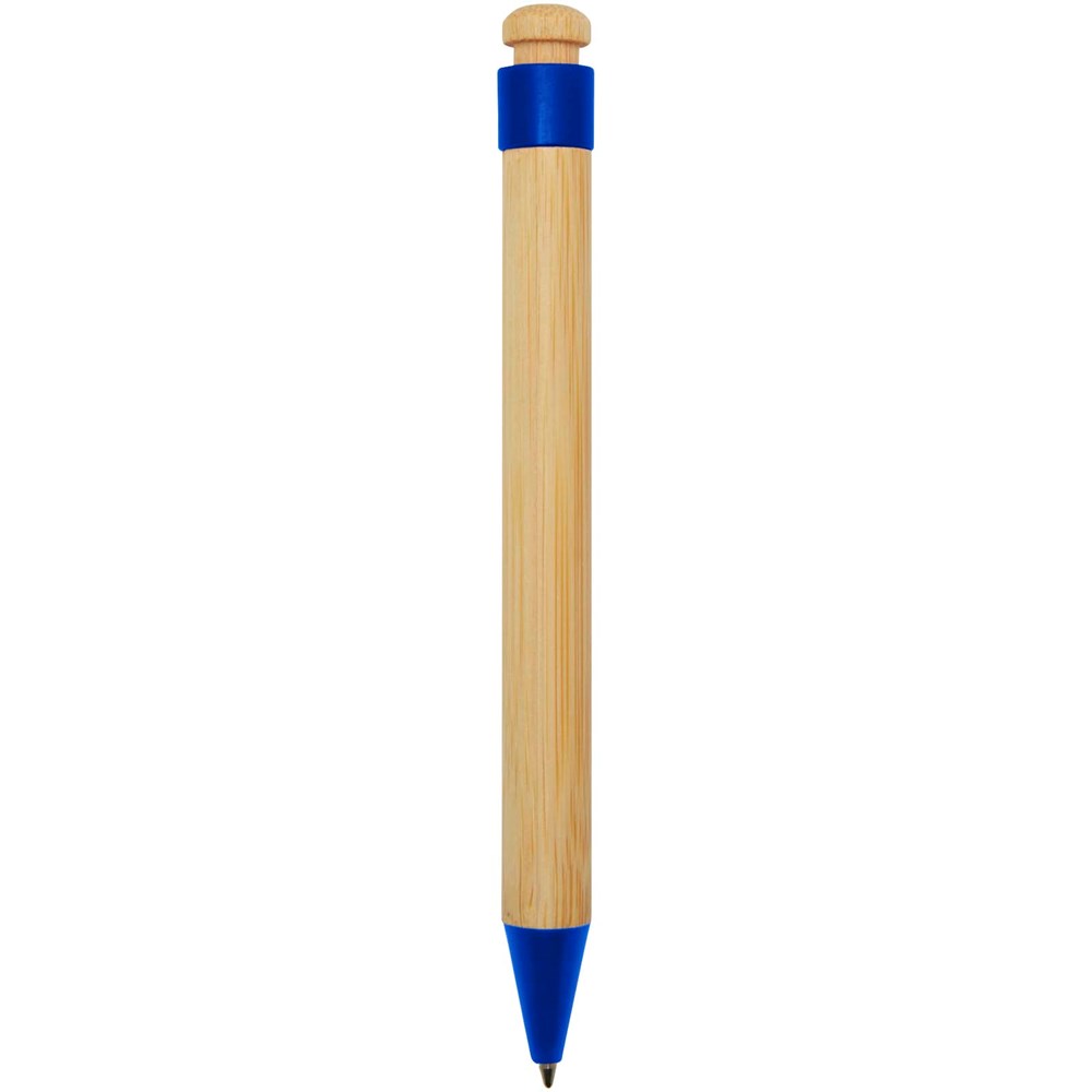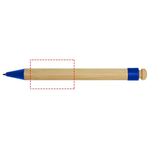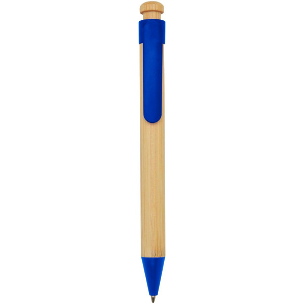 Stylo bille dont le clip et la pointe sont en plastique recyclé, et dont le bouton et le corps sont en bambou. Couleur de l'encre : Noire. Longueur d'écriture : 1000 mètres. Taille de la plume : 1,0 mm.
