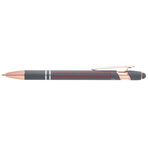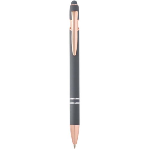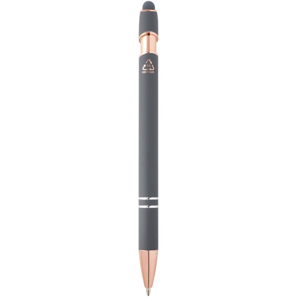 Le stylo bille Nanna avec finition or rose est pourvu d’un corps en aluminium recyclé et d’un stylet tactile en silicone. L’aluminium recyclé réduit également la quantité de déchets dans les décharges et contribue ainsi à la conservation des ressources naturelles, tout en réduisant les émissions de gaz à effet de serre. Couleur de l'encre : Noire. Longueur d'écriture : 800 mètres. Taille de la plume : 1,0 mm.