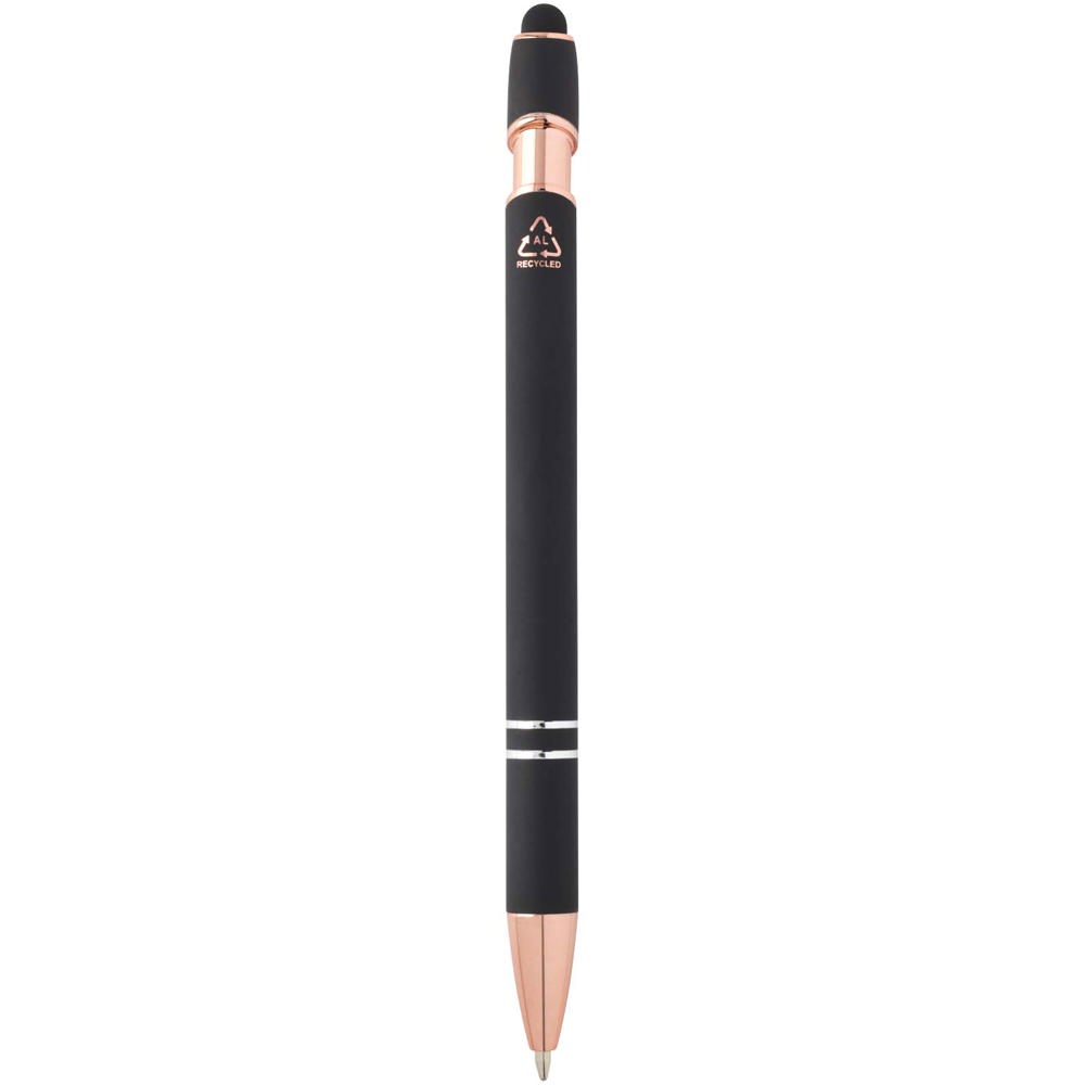 Le stylo bille Nanna avec finition or rose est pourvu d’un corps en aluminium recyclé et d’un stylet tactile en silicone. L’aluminium recyclé réduit également la quantité de déchets dans les décharges et contribue ainsi à la conservation des ressources naturelles, tout en réduisant les émissions de gaz à effet de serre. Couleur de l'encre : Noire. Longueur d'écriture : 800 mètres. Taille de la plume : 1,0 mm.