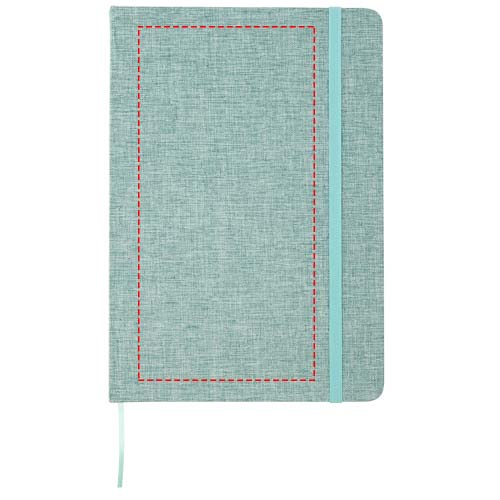 Carnet A5 à couverture rigide en coton recyclé avec 80 feuilles lignées en papier 70 g/m². Le carnet est doté d'une fermeture élastique, d'un ruban et de coins arrondis.