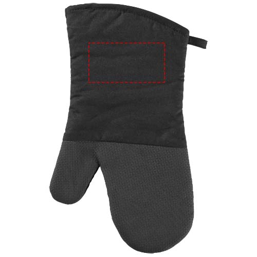 Manique pour droitier avec grip en silicone et motif à carreaux sur l'autre côté. L'ouverture de la manique est de 14 cm.