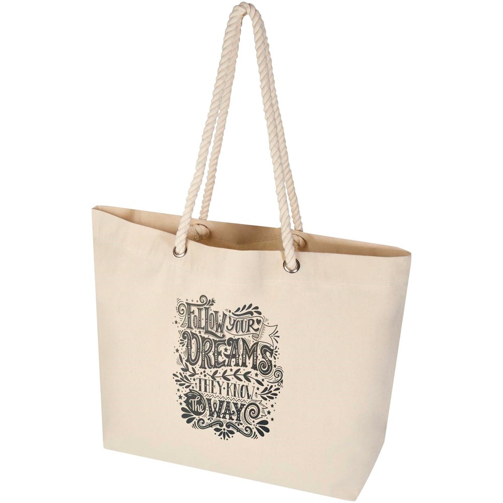 Le sac shopping Florida en coton 100 % recyclé certifié GRS est le sac parfait pour transporter tous les essentiels pour une journée à la plage ou une sortie décontractée. La densité du coton de 270 g/m² rend le sac robuste et durable et les poignées en corde le rendent adapté au transport d'objets lourds dans le compartiment principal. Les méthodes d'impression disponibles pour ce sac shopping sont également certifiées GRS, ce qui garantit que l'ensemble de la chaîne d'approvisionnement est transparente et certifiée. Longueur des poignées : 45 cm. Capacité de charge maximale de 10 kg. Capacité : 18 litres. Fabriqué en Inde.
