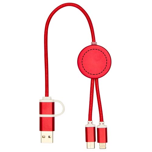 Le câble 5-en-1 de synchronisation des données et de charge rapide 27 W Alasia est fabriqué à partir d’aluminium et de plastique recyclés, élégants et durables à la fois. Ce câble est doté de connecteurs d’entrée USB-A et Type-C combinés à un connecteur de sortie Type-C et combi Lightning/Micro USB. L’USB-A vers l’USB-C fournit une puissance de sortie maximale de 27 W. Toutes les autres options de connexion offrent une puissance maximale de 15 W. Compatible avec CarPlay et Android Auto. Que vous soyez à la maison, au bureau ou en déplacement, le câble Alasia offre performance et style dans un ensemble compact. Longueur du câble : 30 cm.