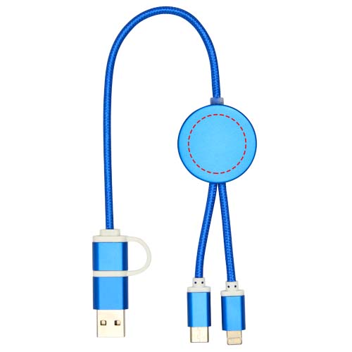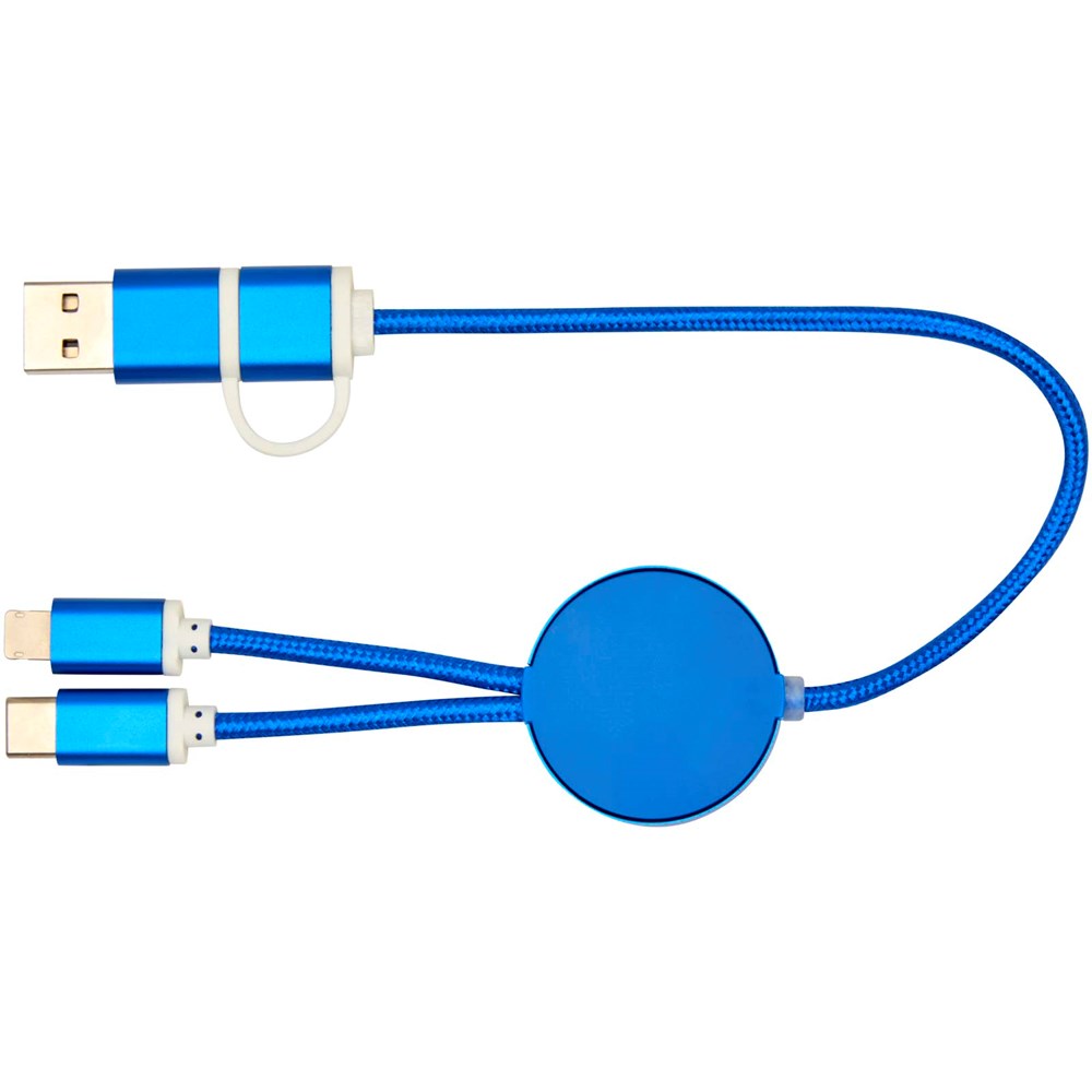 Le câble 5-en-1 de synchronisation des données et de charge rapide 27 W Alasia est fabriqué à partir d’aluminium et de plastique recyclés, élégants et durables à la fois. Ce câble est doté de connecteurs d’entrée USB-A et Type-C combinés à un connecteur de sortie Type-C et combi Lightning/Micro USB. L’USB-A vers l’USB-C fournit une puissance de sortie maximale de 27 W. Toutes les autres options de connexion offrent une puissance maximale de 15 W. Compatible avec CarPlay et Android Auto. Que vous soyez à la maison, au bureau ou en déplacement, le câble Alasia offre performance et style dans un ensemble compact. Longueur du câble : 30 cm.