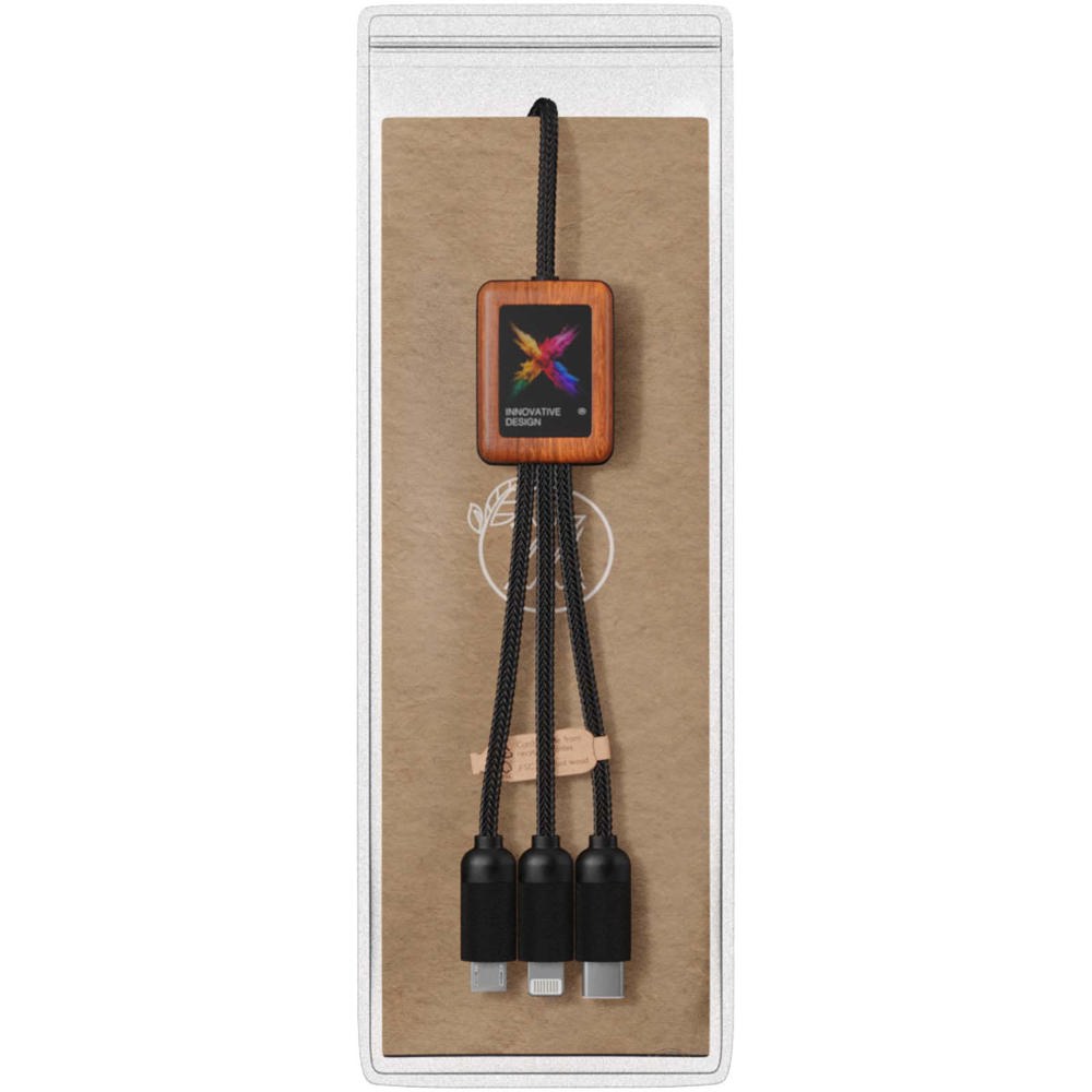 Câble de charge 5-en-1 SCX.design C38 en rPET avec logo lumineux et boîtier carré en bois de 40 W