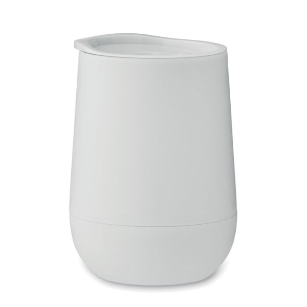 Gobelet à double paroi en PP avec couvercle à ouverture coulissante en PS et ABS. Capacité : 300 ml.