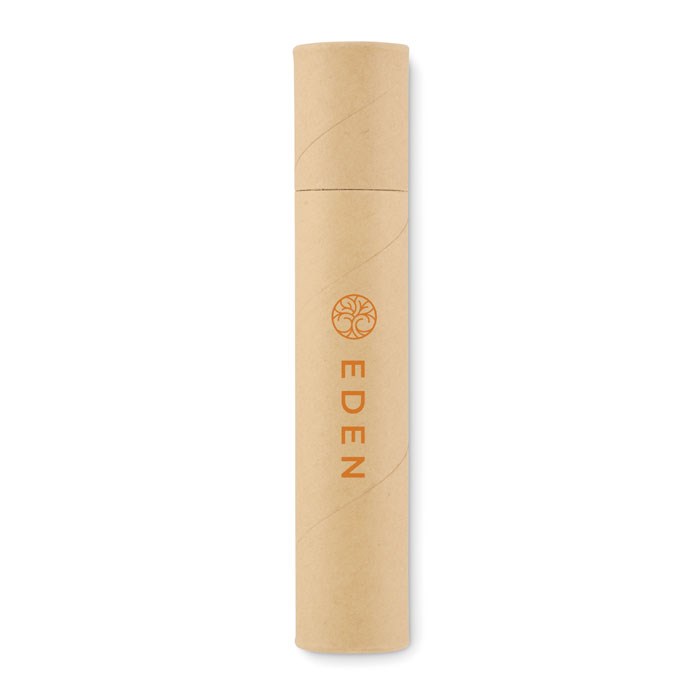 Tube en papier recyclé comprenant 2 crayons, 1 stylo à bille en carton, 1 taille-crayon en bois...plus