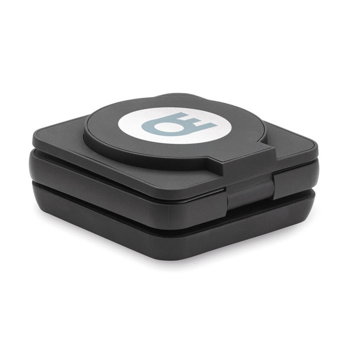Station de charge pliable 3 en 1 en ABS recyclé caoutchouté. Elle comprend un chargeur magnétique...plus