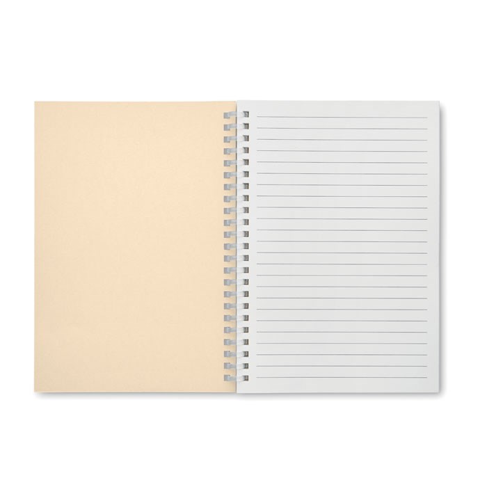 Carnet A5 à couverture en carton recyclé et reliure à spirale. 160 pages de papier ligné recyclé (80 feuilles). FSC®-certified | FSC MIX CREDIT, P7.1, FSC-C213206