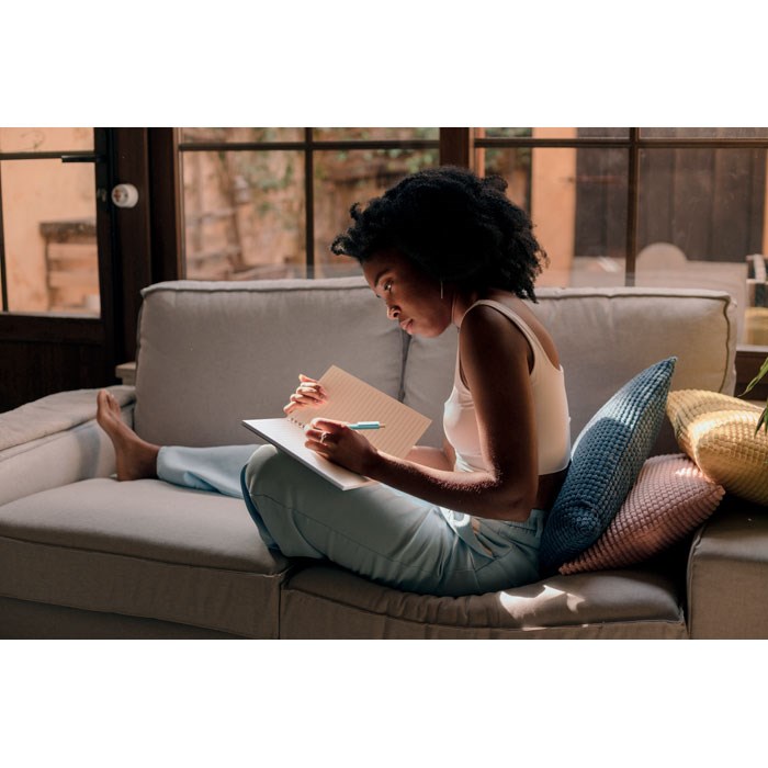 Carnet A5 à couverture en carton recyclé et reliure à spirale. 160 pages de papier ligné recyclé...plus