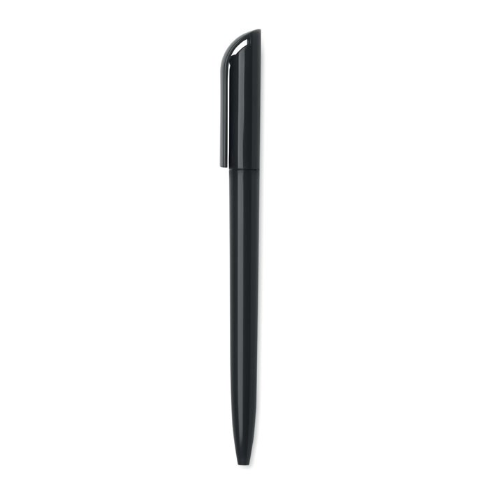 Carnet A5 avec couverture structurée en PU et stylo-bille ABS twist à l'intérieur du porte-stylo du dos. 160 pages lignées en papier recyclé (80 feuilles).