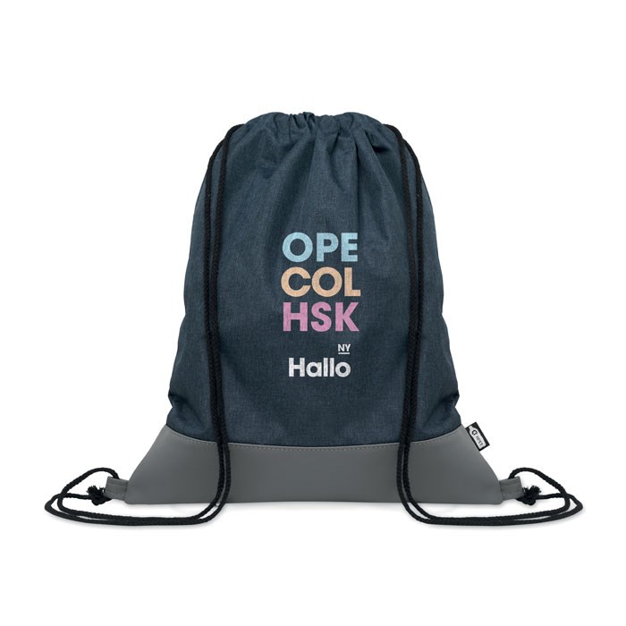 Sac à cordon en polyester 300D RPET bicolore avec détails en PU souple et cordon en polycoton.plus