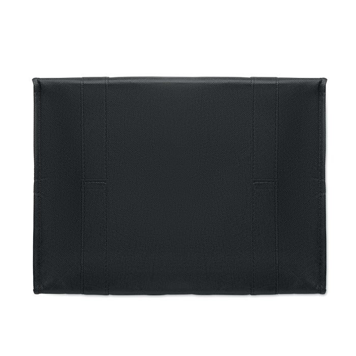 Sac isotherme en RPET non tissé 80gr/m². Matériau d'isolation : feuille d'aluminium. Capacité de 25 litres. Compartiment principal avec fermeture à glissière sur le dessus et fond renforcé amovible.