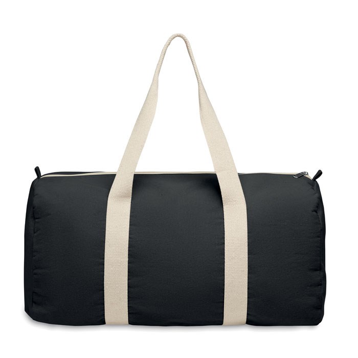 Sac de sport ou de voyage avec compartiment latéral zippé et poche intérieure zippée en coton recyclé (80%) et polyester recyclé (20%) de 320 gr/m² avec longues poignées.