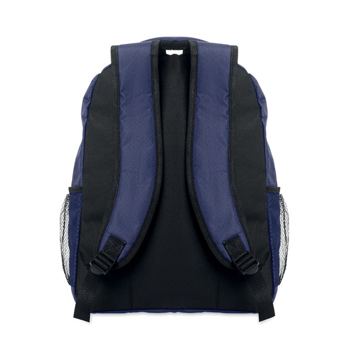 Sac à dos pour ordinateur portable 15 pouces en polyester 600D RPET avec compartiment intérieur rembourré pour l'ordinateur portable, poches en filet sur les deux côtés et poche frontale à fermeture éclair.
