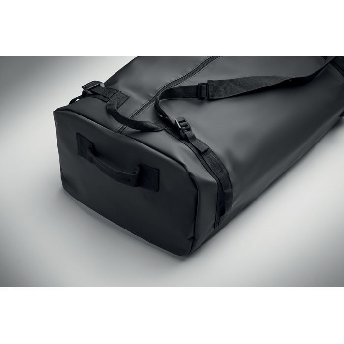 Grand sac de sport ou de voyage pouvant également être utilisé comme sac à dos, en tarpaulin 50C avec compartiment intérieur zippé. Il est doté d'une bandoulière détachable et réglable et d'une doublure en RPET.