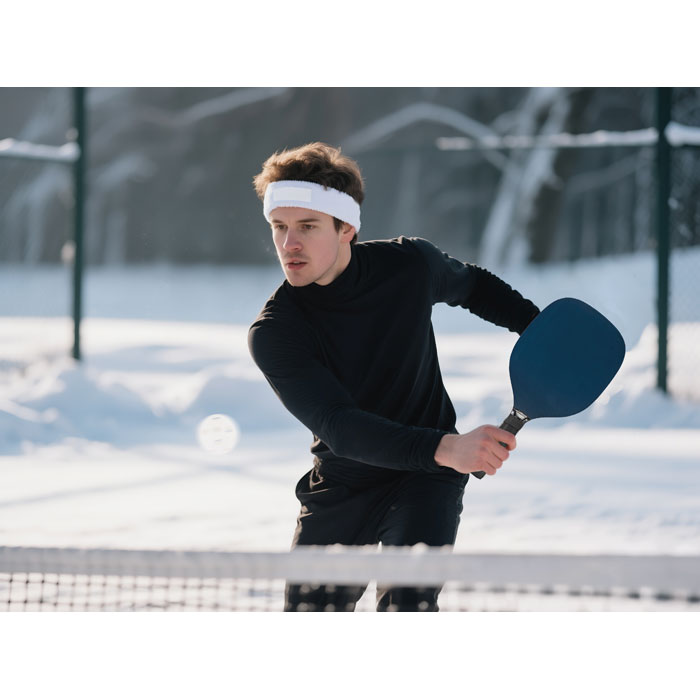 Bandeau en polycoton (79% coton/13% élasthanne/8% polyester) avec patch en coton pour la zone d'impression.