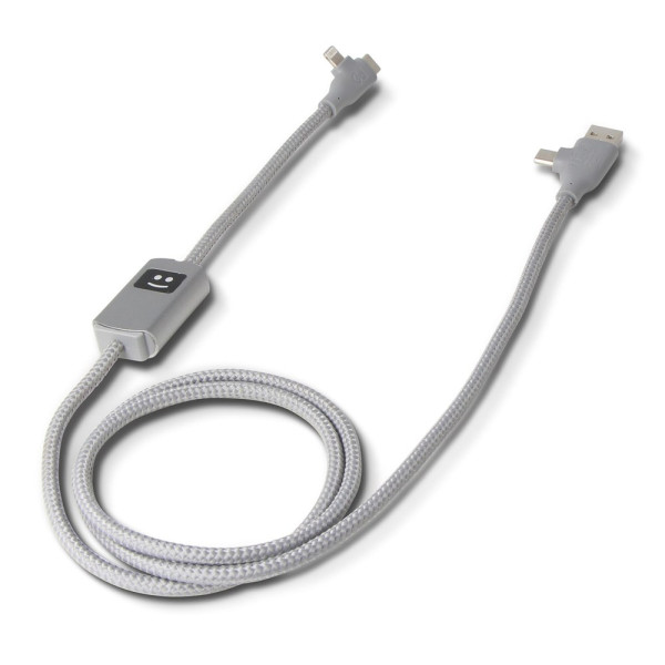 Rechargez intelligemment ! 100W pour MacBooks, ordinateurs portables, tablettes, smartphones. Icône souriante : charge rapide (verte) ou régulière (blanche). Aluminium recyclé et plastique pour charge rapide et transfert de données. Les produits Xoopar ne peuvent pas être vendus en France et en Espagne.