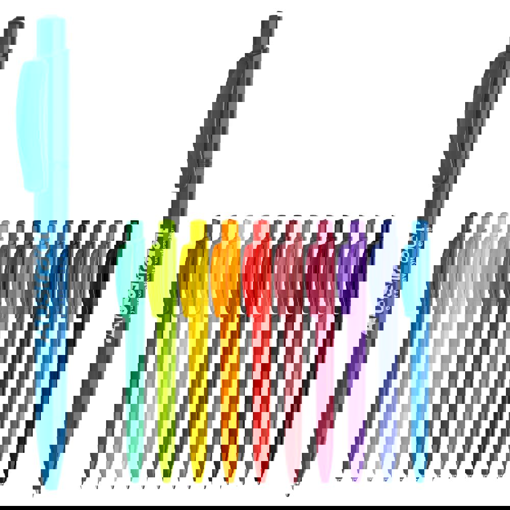 Le stylo bille Kamal possède une grande surface de marquage sur le clip et sur le corps. Corps et bouton poussoir blancs, clip coloré. Sa cartouche X20 écrit jusqu’à 2.5km, écriture par défaut bleue Le stylo est fabriqué en Europe en plastique ABS. Les combinaisons de couleurs pour ce stylo sont possibles à partir de 5 000 pièces.