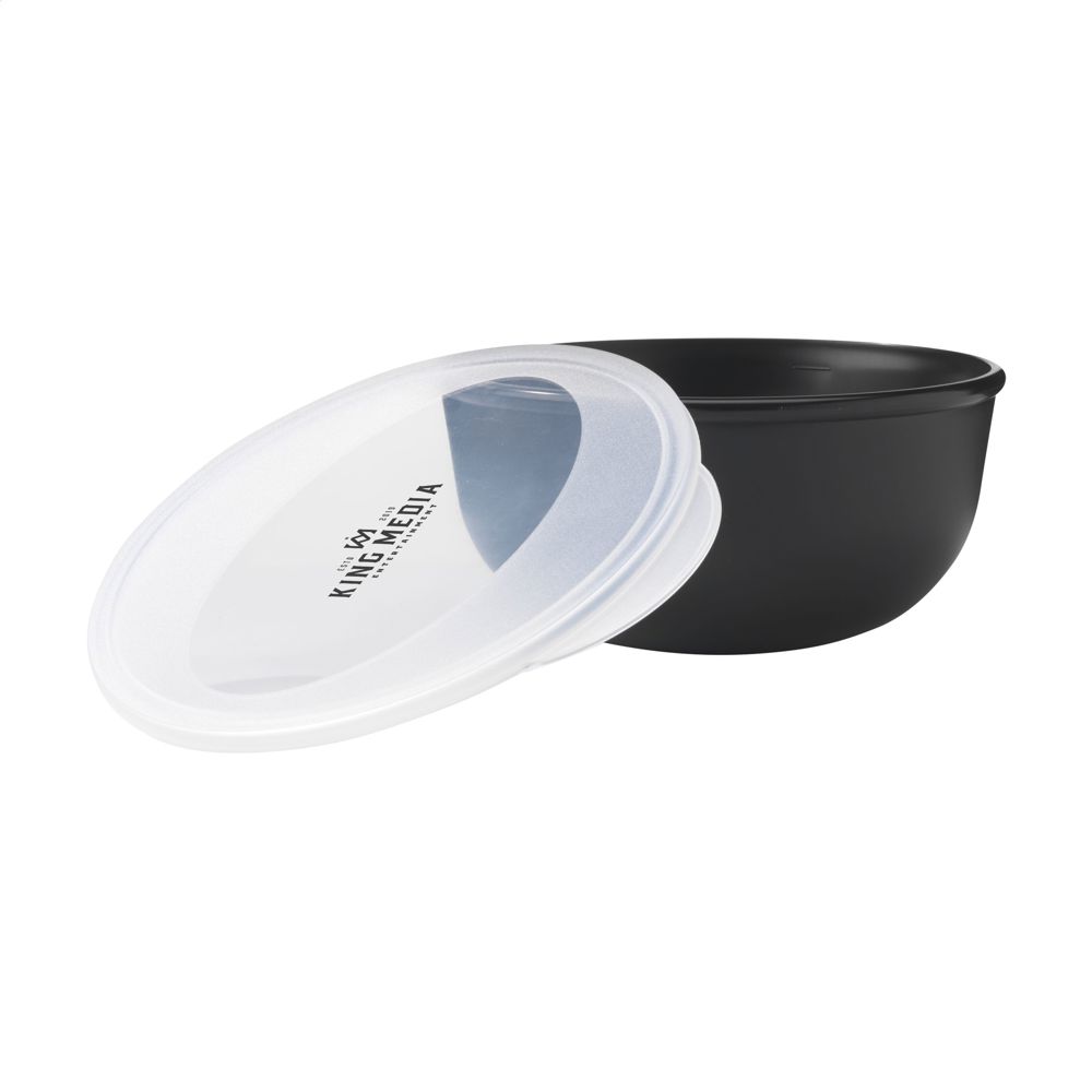 Bol alimentaire réutilisable avec couvercle transparent en PP 100% recyclable. Idéal pour une utilisation pendant les déplacements ou pour le déjeuner à l'école ou au travail. Peut également être utilisée comme boîte à aliments frais. Ce bol alimentaire et son contenu doivent être transportés à la verticale pour éviter les fuites. Convient au micro-ondes. Sans BPA. Ne passe pas au lave-vaisselle. Fabriqué en Allemagne. Capacité 1.000 ml.