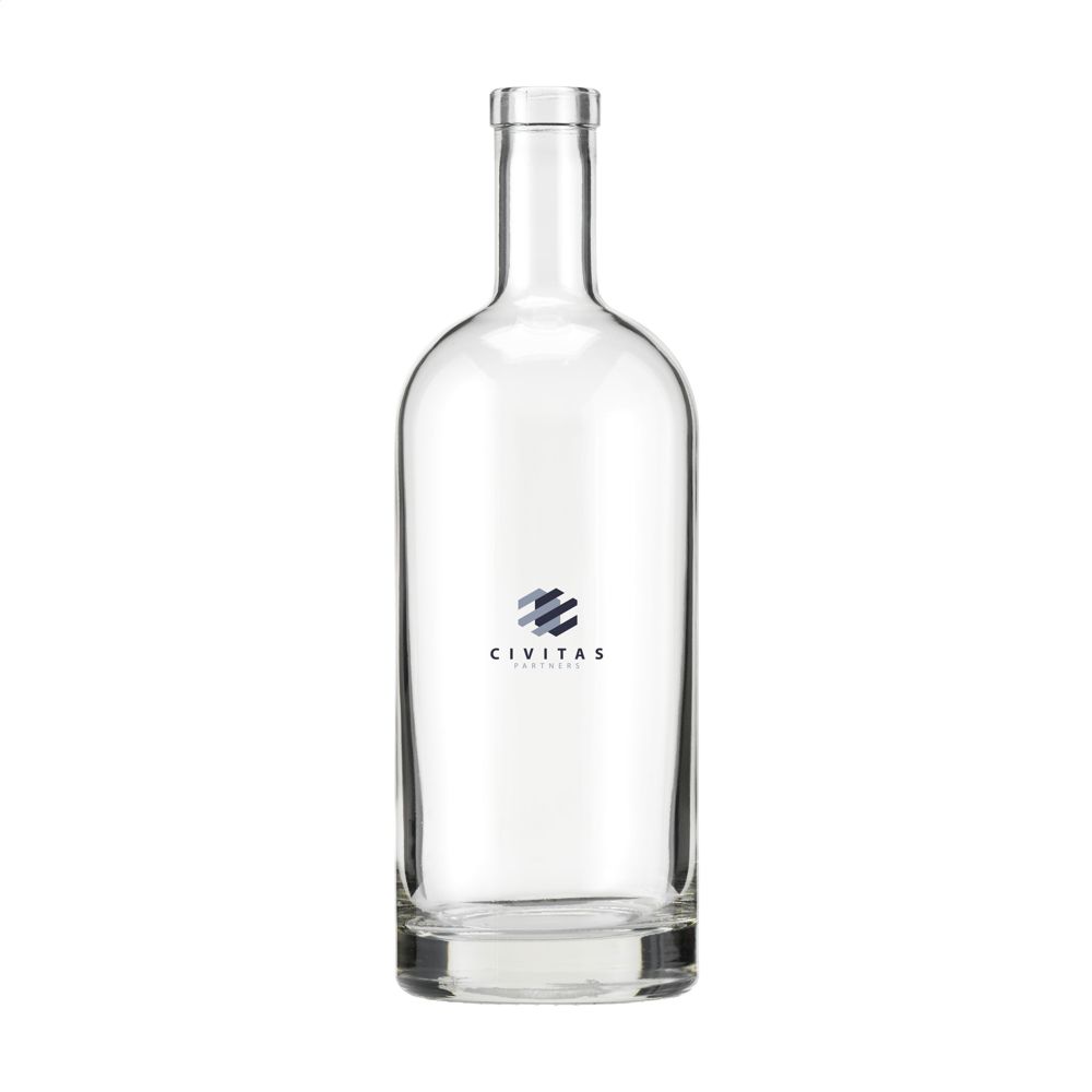 Bouteille d'eau en verre élégante avec une base solide. Grâce à son design intemporel, cette bouteille est idéale comme bouteille de table et convient particulièrement à l'industrie de la gastronomie. La bouteille passe au lave-vaisselle. Le lavage à la main est recommandé pour préserver l’impression. Capacité 1L.