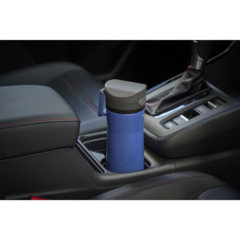 Bouteille d'eau Contigo® en acier inoxydable à double paroi et isolée sous vide avec technologie AUTOPOP™. Le bec verseur fermé protège contre les salissures et les microbes. La bouteille convient uniquement pour les boissons froides et non gazeuses. Celles-ci restent fraîches jusqu'à 24 heures. Grâce à sa conception anti-fuites, vous ne renverserez rien dans votre voiture, sur votre bureau ou où que vous soyez. La poignée intégrée permet de transporter facilement la bouteille. S'adapte à la plupart des porte-gobelets. La bouteille et le couvercle passent au lave-vaisselle sur l'étagère. Le lavage à la main est recommandé pour préserver l’impression. Capacité 590 ml. REMARQUE : jusqu'à 1000 articles disponibles sous 10 jours ouvrés hors marquage, à l exception des réservations. Contigo: le meilleur de la qualité, du design et de la technologie. Immédiatement reconnaissable par son design élégant et solide. Les bouteilles d'eau, thermos et infuseurs Contigo sont sans odeur, sans goût et sans BPA. Les bouteilles peuvent être utilisées d'une seule main et sont garanties 100% étanches, de sorte qu'elles peuvent être utilisées à tout moment, n'importe où. Livré avec une garantie de 2 ans.