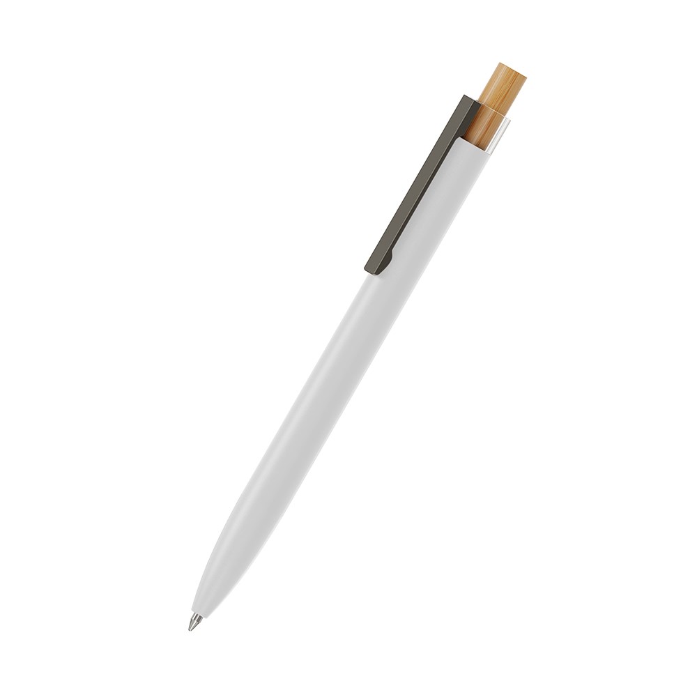 Le Alani metal Mb est un Stylo à bille rétractable. Matériaux et surfaces: Corps: aluminium recyclée, surface mat laqué avec logo. Embout: transparent rPET (PET recyclé). Poussoir: Bambou. Clip: Acier inoxydable revêtu bronze mat. Couleurs standards: Corps: disponible en 5 couleurs. Couleurs spéciales: à partir de 10 000 pcs, sans supplément PMS à partir de 25 000 pcs. Mine: Icefill XS (1 800 m), bleu, Contre supplément: