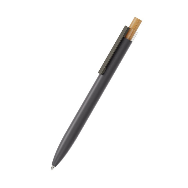 Le Alani metal Mb est un Stylo à bille rétractable. Matériaux et surfaces: Corps: aluminium recyclée, surface mat laqué avec logo. Embout: transparent rPET (PET recyclé). Poussoir: Bambou. Clip: Acier inoxydable revêtu bronze mat. Couleurs standards: Corps: disponible en 5 couleurs. Couleurs spéciales: à partir de 10 000 pcs, sans supplément PMS à partir de 25 000 pcs. Mine: Icefill XS (1 800 m), bleu, Contre supplément: