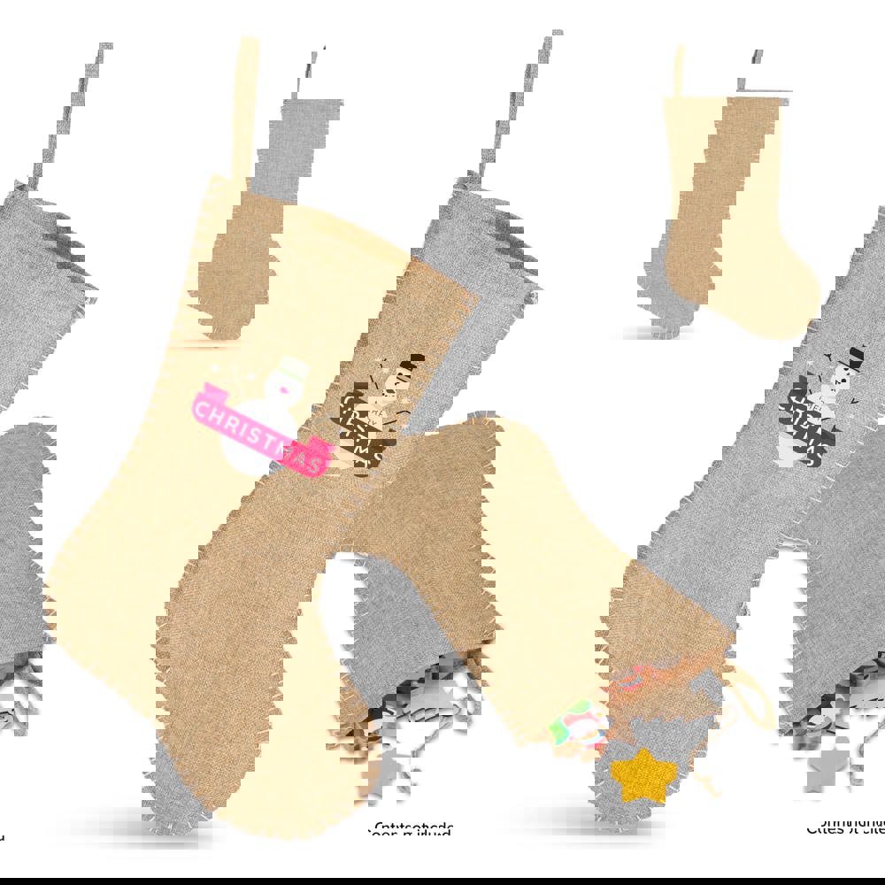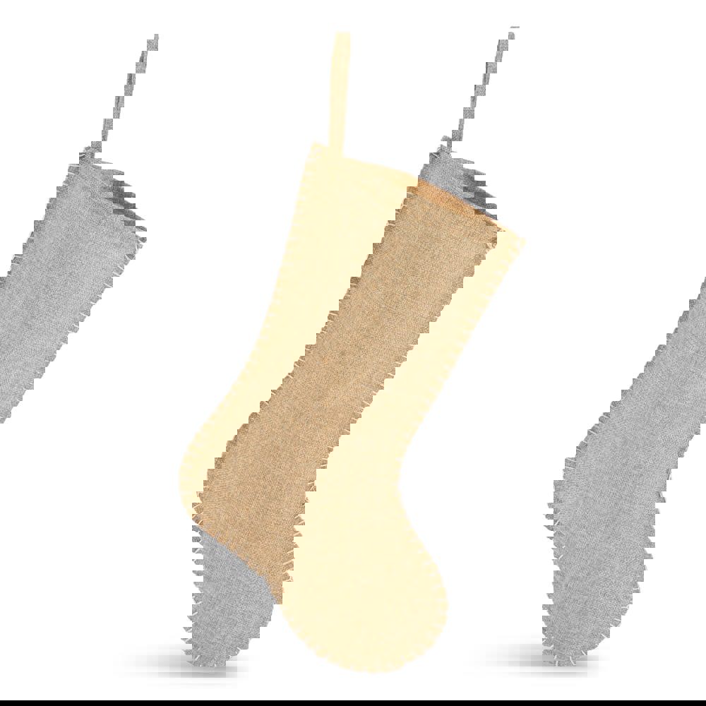 Bas de Noël en jute avec coutures décoratives 40 cm