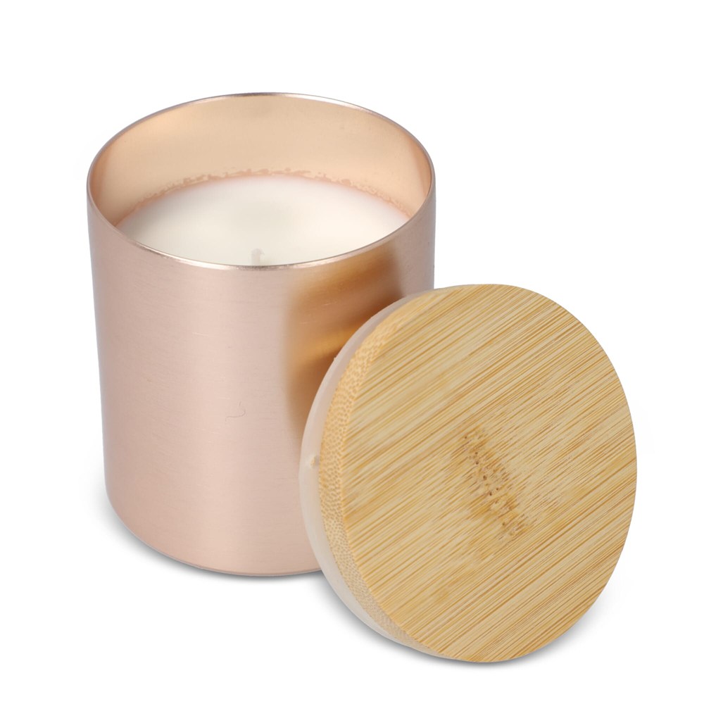 Bougie végétale parfumée Bhakti dans un pot en aluminium recyclé