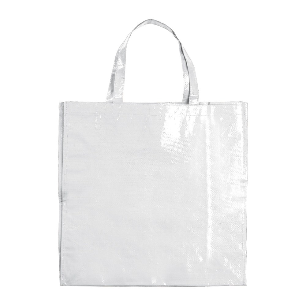 Grand sac en PP tissé finition brillante. Le sac offre une belle surface de marquage en sérigraphie sur la 1ere et la 2eme face. Tous nos produits sont testés et certifiés, et répondent aux normes sociales.