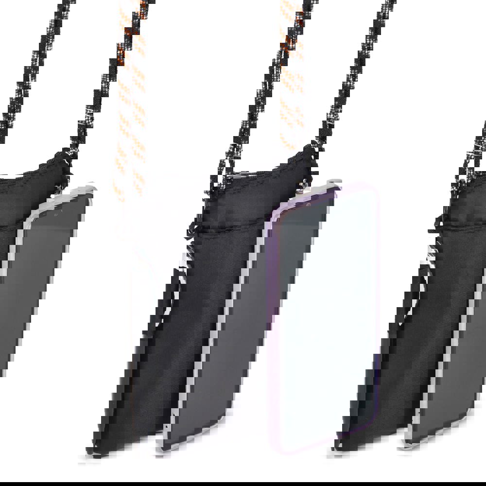 Cette pochette compacte est idéale pour transporter téléphone, clés et portefeuille. La boucle latérale sécurise un stylo, tandis que la sangle en paracorde ajoute une touche unique. Elle peut aussi se transformer en lanière de téléphone pour un usage mains libres.