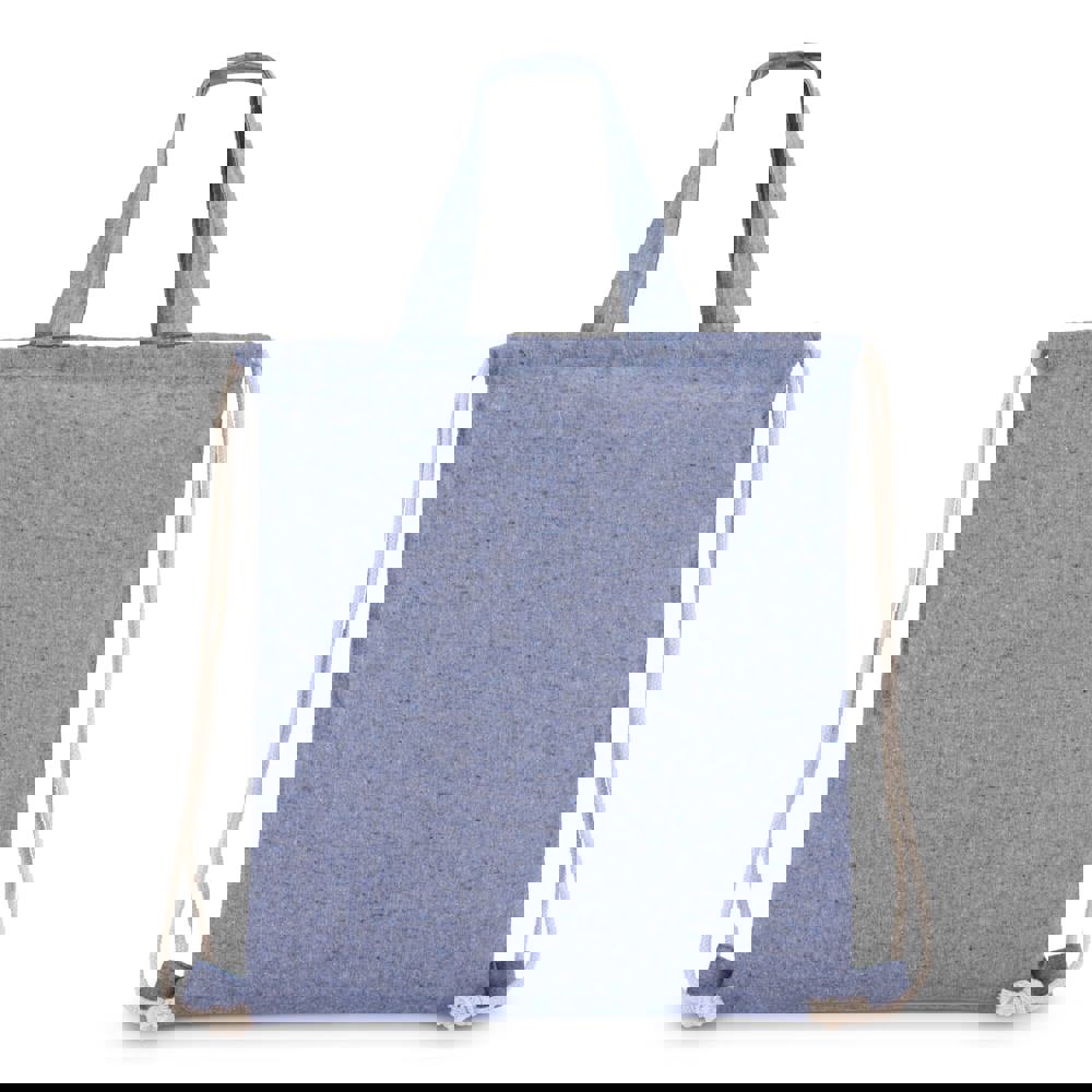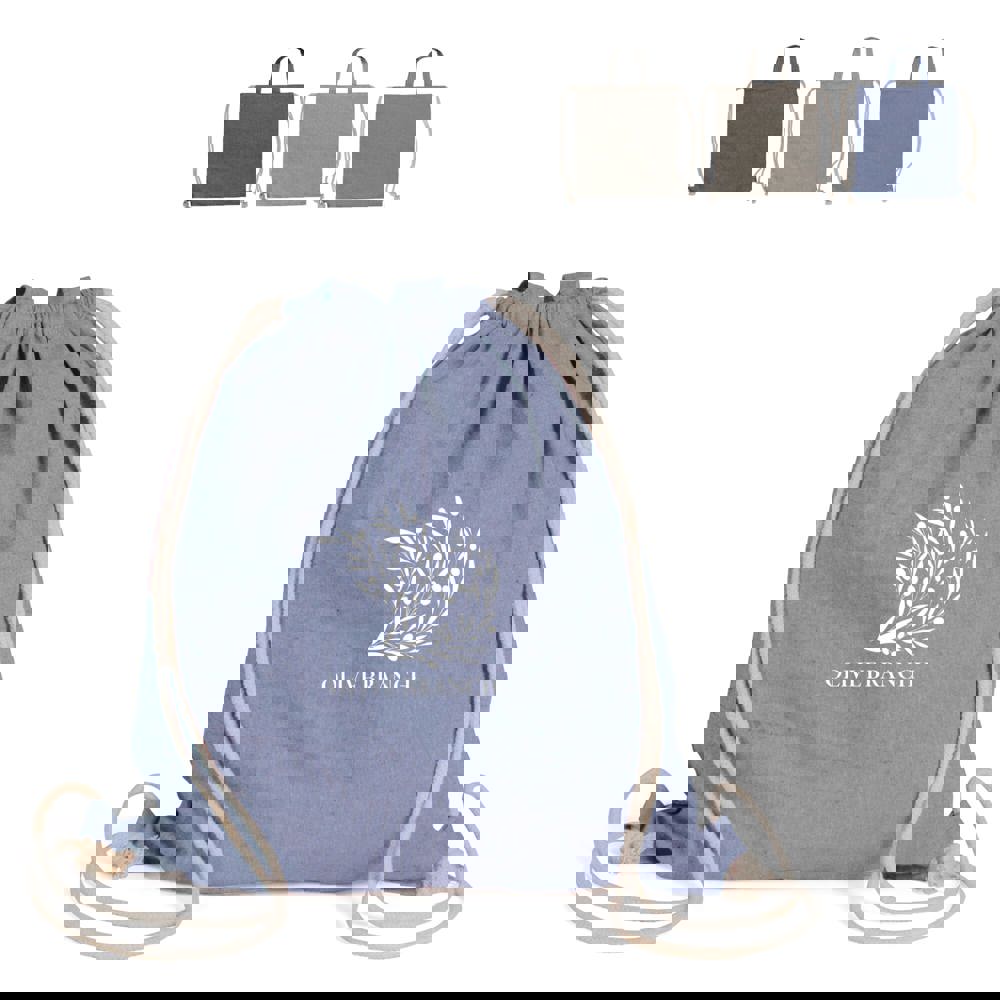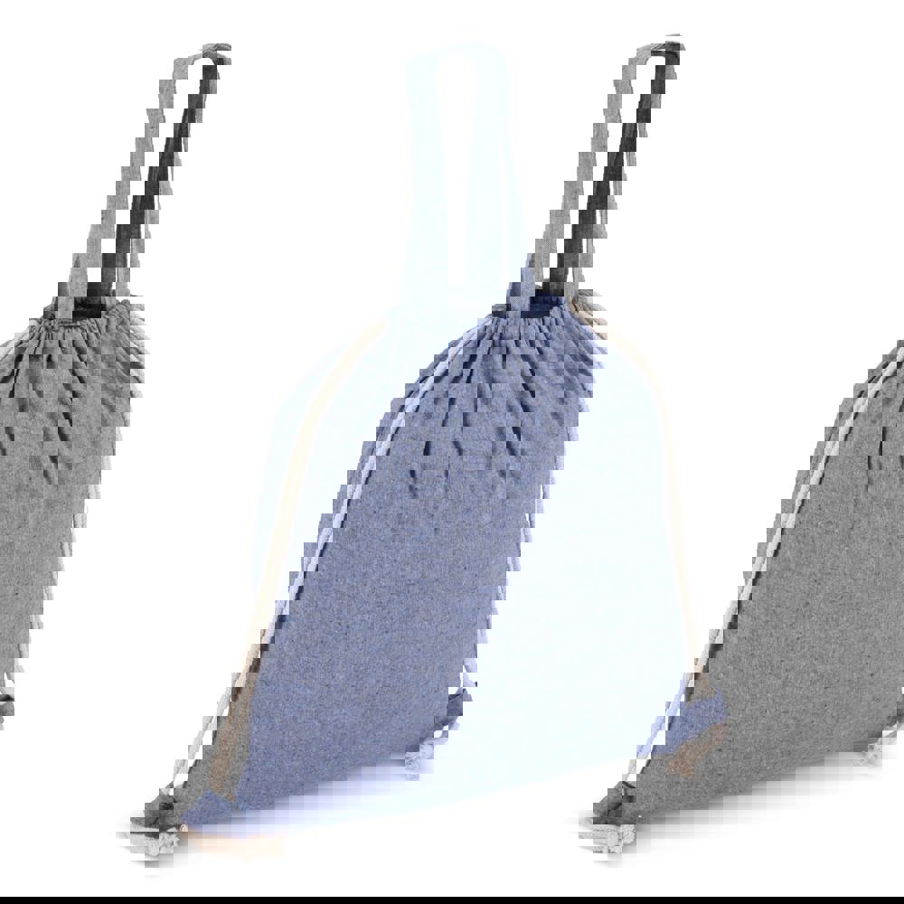 Sac cordelettes très pratique avec poignées, en coton recyclé. La spécificité de ce matériau confère au tissu un aspect et une impression unique. De légères variations de couleur sont inévitables : c'est un véritable signe de la nature recyclée de ce sac.