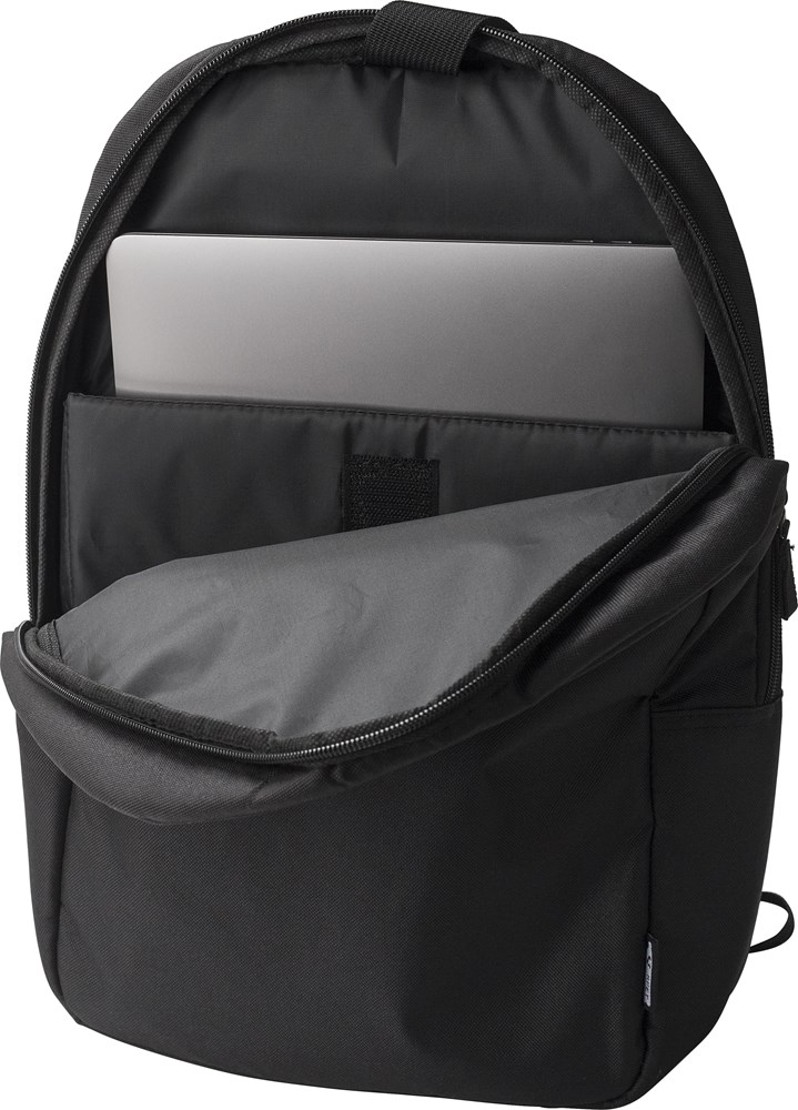 Sac à dos porte-ordinateur de 15'' en polyester rPET 600D avec poche frontale zippée.