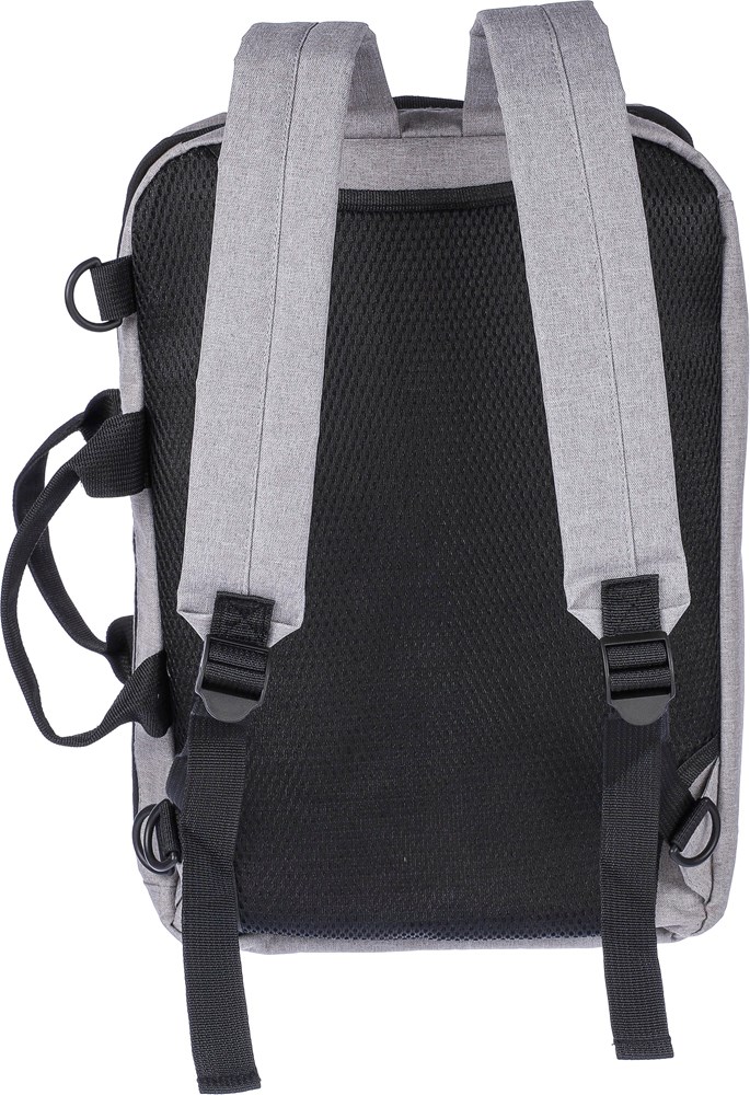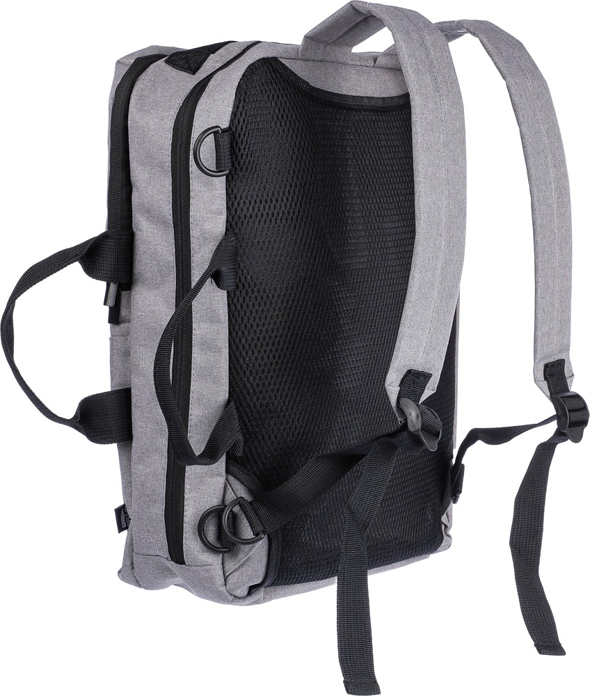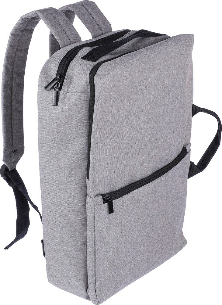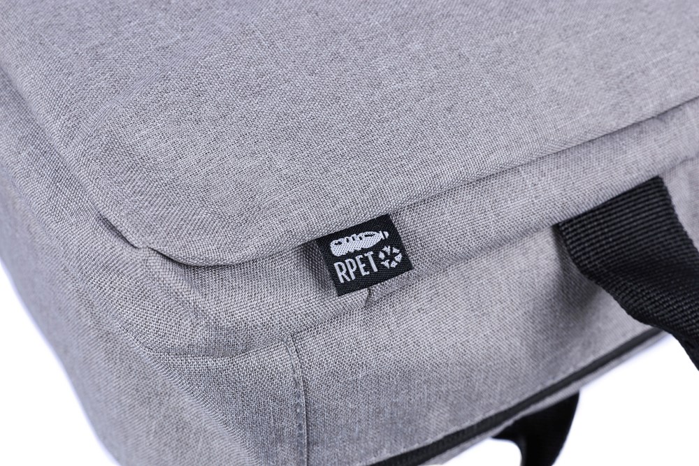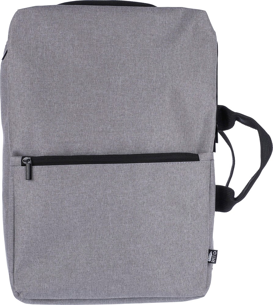 Sac à dos porte-ordinateur portable de 15'' en polyester rPET 300D avec doublure en 210D. Poignée sur le dessus, bretelles réglables et poignées de transport sur le côté. Les bretelles réglables se placent derrière le matelassage pour une fonction de transport avec des poignées latérales. Compartiment velcro pour ordinateur portable et petit compartiment zippé. Poids transportable jusqu'à 8 kg. Comprend une étiquette rPET.