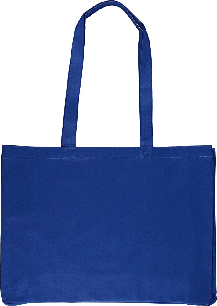 Sac shopping en coton 220 g/m2 avec soufflet de 10 cm. Poids transportable jusqu'à 8 Kg. Ce produit est certifié OEKO-TEX® STANDARD 100.