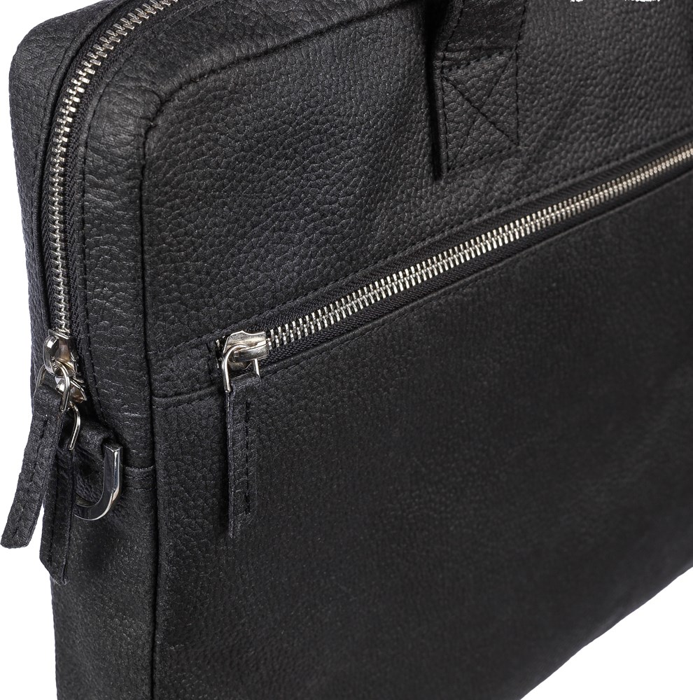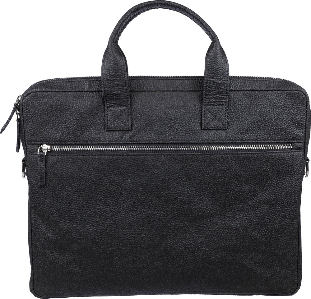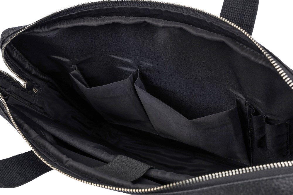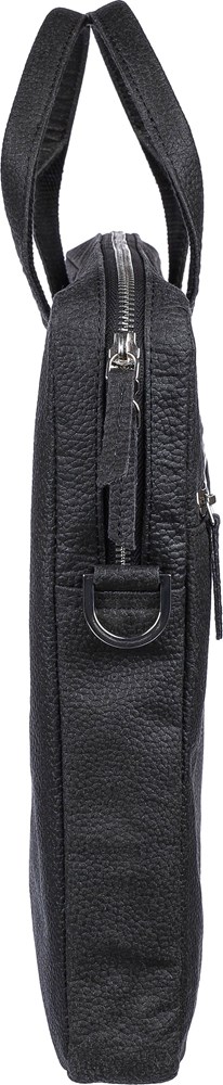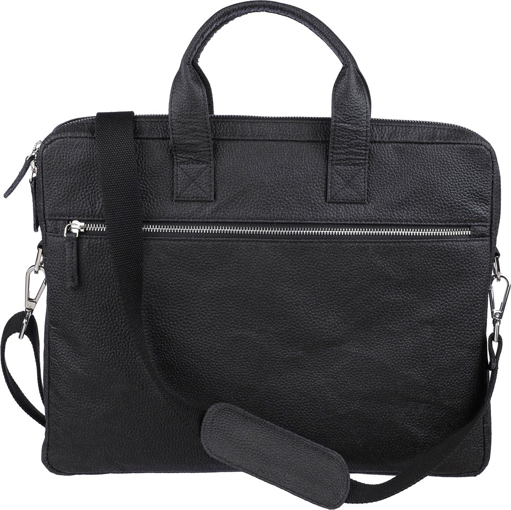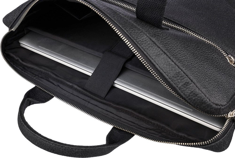 Sacoche porte-ordinateur de 15'' en peau de tomate avec poche frontale zippée, un compartiment matelassé avec fermeture Velcro et de multiples poches intérieures et bretelles réglables. Composition : 50 % coton, 30 % tomate, 20 % biopolymère.