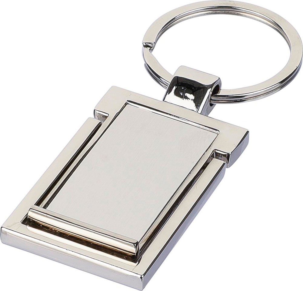 Porte-clés en zinc avec support de téléphone dans une pochette cadeau en kraft.plus