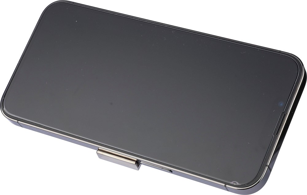 Porte-clés en zinc avec support de téléphone dans une pochette cadeau en kraft.