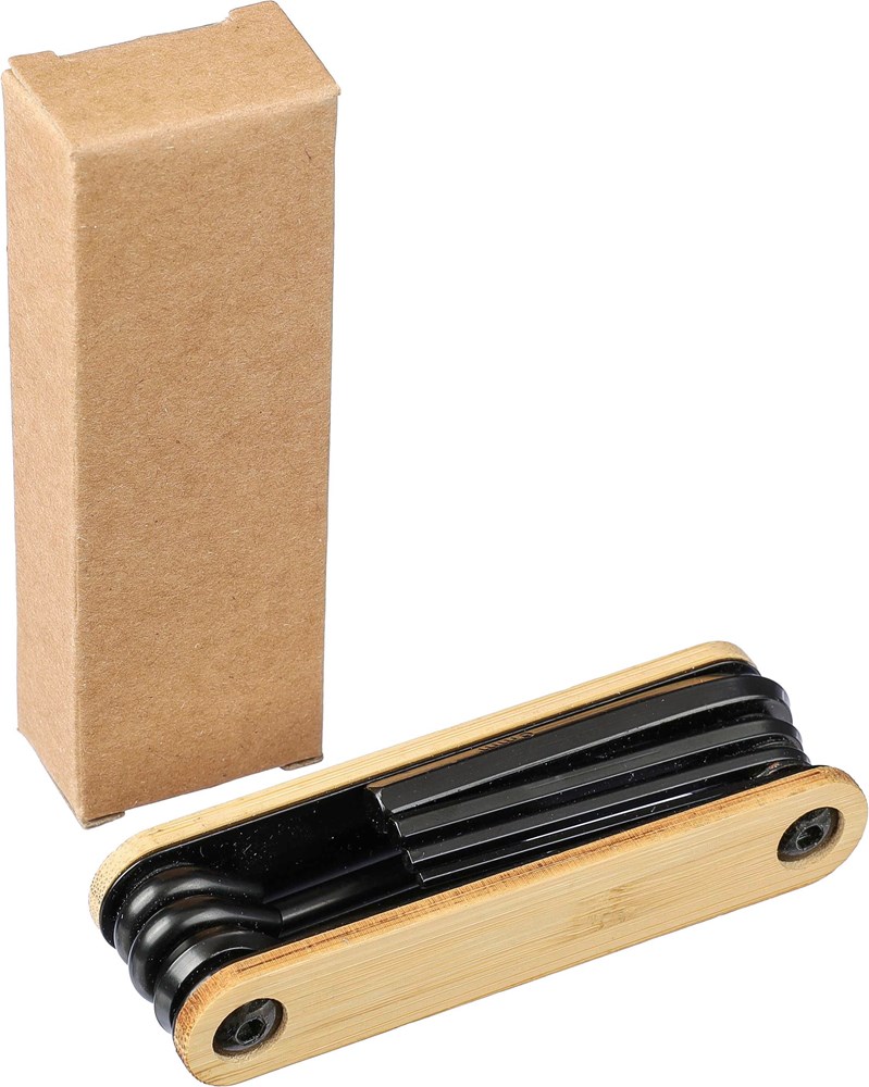 Outil multifonction en métal et bambou contenant un ensemble de 7 clés Allen, des tournevis...plus