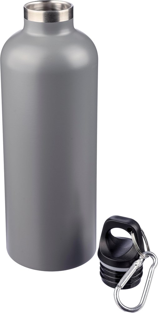 Gourde double paroi de 500 ml en acier inoxydable recyclé (s/s304) matt (sauf silver) bouchon en PP et mousqueton en aluminium, maintien des boissons chaudes pendant 8 heures et froides pendant 12 heures, dans une boîte cadeau en kraft.